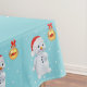 Cute Holiday Snowman and Golden Ball on Light Teal Tablecloth