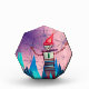 Watercolor drawing with a robot, snowflakes and mountains.