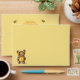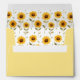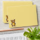 A cute teddy bear dressed like a honey bee adorns the front of these envelopes. Two bees fly above your return address on the top back flap. The interior is a pattern of pretty brown-centred yellow flowers. All text can easily be changed to your information.