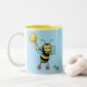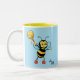 Cute Honey Bee with Heart & Monogram on Light Blue Two-Tone Coffee Mug
