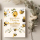 Cute Honey Bee Yellow Floral Greenery Baby Shower Invitation
