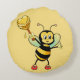 Cute Honey Bumble Bee with Heart on Golden Beige Round Cushion