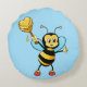 Cute Honey Bumble Bee with Heart on Light Blue Round Cushion