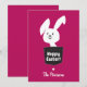 Cute Hoppy Easter Magenta Red White Bunny Cartoon Holiday Card