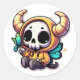 Cute Horned Skul enjoys the butterflies Classic Round Sticker