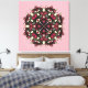 Pastel goth canvas art in pink and green depicting a horror circus style kaleidoscopic illustration with eyes and horns.