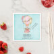Paper napkins with an adorable design featuring a watercolor illustration. A hot air balloon decorated wuth pretty red and pink flowers. A cute little white baby bear sits in the basket. Vintage style light blue background.