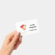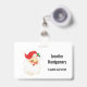 A name tag with an adorable design featuring a watercolor illustration. A hot air balloon decorated with pretty red and pink flowers. A cute little white baby bear sits in the basket. Light blue shabby style background.