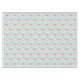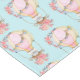 Patterned tablecloth with an adorable design featuring a watercolor illustration. A hot air balloon decorated wuth pretty red and pink flowers. A cute little white baby bear sits in the basket. Light blue background.