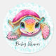 Cute Hot Pink and Teal Turtle Girl Baby Shower Classic Round Sticker