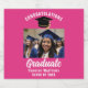 This cute hot pink and white custom senior girls graduation party beer bottle label features your high school or college name for the class of 2025. Customise with your graduate name and year under the trendy handwritten script and grad cap for girly personalised graduation party favours.