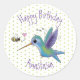 Cute hummingbird and bee cartoon illustration classic round sticker