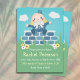 What a fun way to honour a mummy-to-be than to give her a baby shower with the theme of Humpty Dumpty. A classic, adorable and familiar Mother Goose nursery rhyme that we all love and adore. This design features a Humpty Dumpty character sitting on a short wall with flowers and grass. He has rosy cheeks and is wearing a suit with a big bow tie. The background has floating clouds. The colours are yellow, blue and green. Customise to make your own.