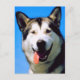 This post card has an adorable colour photo of a husky dog panting with his tongue hanging out.