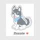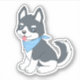 Adorable cartoon black and white husky dog with blue eyes and matching blue bandanna.