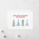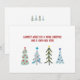 On the front side: merry whimsical Christmas trees in soft blue festive colours, perfectly framing your holiday sentiment: "Warmest wishes for a Merry Christmas and a Happy New Year!" in warm red letters.