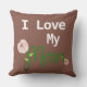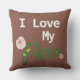 Cute green script MOM - white I LOVE MY brownish throw outdoor pillow. You could customise the message if you wish. Contact me if you need any help or if you have any questions.