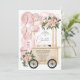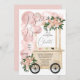 Cute ice cream cart pink balloons bridal shower invitation featuring illustration of clusters of pink balloons, boho ice cream cart with little heart and fall autumn floral bouquet with beige and dusty pink flowers. Perfect bridal brunch!