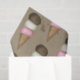 This design features a cute whimsical birthday ice cream, a watercolor pink sweet adorable custom, a happy birthday Neapolitan flavour, a pink cream ivory brown stripes, a festive fun creative dessert birthday, a stylish trendy pattern, a festive confetti sprinkles watercolor, with a creative unique typography cute design, for birthday party gift wrap wrapping, a birthday wrapping supplies