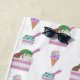 Ice cream desserts illustrated pattern on white monogrammed beach towel.