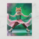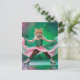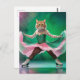 AI generated art of a cat ice skating in a green dress with pink details as she twirls and her dress swishes out beautifully