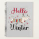 A cute ice skating dog illustration and the words: Hello Winter.