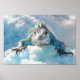 Cute Iguana Portrait On Fluffy Cloud With Blue Sky Poster