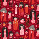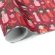 Cute Illustrated Japanese Kokeshi Red Wrapping Paper