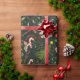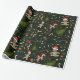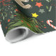 Cute Illustrated Retro Christmas Dark Green Wrapping Paper