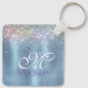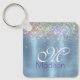 Cute iridescen ice blue faux glitter monogram Metal keychain. Girly, trendy and modern keychain. It makes the perfect sweet 16 birthday, wedding, bridal shower, anniversary, baby shower or bachelorette party gift for someone that loves glam luxury and chic styles. Whether for valentines day, Christmas or any occasion in general this metal keychain will make a great gift idea for any girl or woman who loves modern sparkly elegance. PLEASE NOTE: These are flat printed graphics - no real glitter, jewels or raised parts.