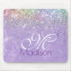 Cute iridescen lilac purple faux glitter monogram mouse pad
