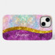 Cute iridescent fuchsia gold faux glitter monogram Case-Mate iPhone case
