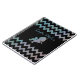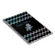 Adorable customisable notebook design with a sparkling unicorn silhouette on a black and zigzag striped iridescent glittery background. The text is fully customisable.
