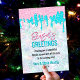 Cute iridescent pink aqua faux glitter Christmas party greeting card. Shimmering cute glittery Christmas greeting card. Perfect for sending out to family or friends for the holiday season. To make it extra special it is embellished with beautiful faux glitter. This design can also be transferred onto any product on zazzle. You can personalise it with your own text and information.
