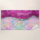 Cute iridescent pink silver faux glitter monogram beach towel