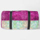 Cute iridescent pink silver faux glitter monogram personalised Duffle Bag. It is designed with elegant girly silver and iridescent faux glitter in unicorn, rainbow, pink,fuchsia and aqua..