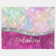 Cute iridescent pink silver faux glitter monogram fleece blanket