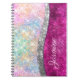 Make back to school fun with this Cute personalised Notebook. It is designed with elegant girly iridescent glitter in unicorn rainbow pink fushia silver.