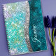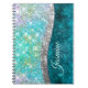 Cute iridescent turquoise faux glitter monogram notebook