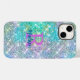 Cute iridescent unicorn blue faux glitter monogram Case-Mate iPhone case