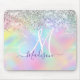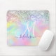 Cute iridescent unicorn faux glitter monogram mouse pad