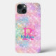 Cute iridescent unicorn pink faux glitter monogram Case-Mate iPhone case