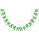 This awesome bunting features a graphic image of a cute Irish unicorn. The unicorn is bright green with a mane and tail made of two more shades of green. It has a bright gold horn and golden hooves. The unicorn has a gold ringed eye and a friendly smile. There are four small Shamrocks on the side of the unicorn.