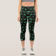 Cute Irish Shamrock Pattern on Black Capri Leggings