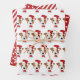 NewParkLane - Whimsical Christmas wrapping paper sheets, one with a cute Jack Russell wearing a Santa hat pattern, one with fun red and white stripes and one with white polkadots on a red background.