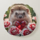 Cute January Hedgehog with Garnet Heart Round Cushion