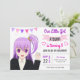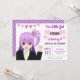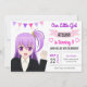 Amaze your guests with this cute birthday party invitation featuring an adorable little Japanese girl against a white background. Simply add your event details on this easy-to-use template to make it a one-of-a-kind invitation. Flip the card over to reveal a purple and white stripes pattern on the back of the card.
