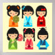 Cute Japanese Kokeshi doll pattern Poster