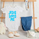 This adorable design features the sweet and uplifting message "Jesus Loves Me" in a soft blue font. Simple yet meaningful, it brings a gentle spiritual touch to any baby’s wardrobe. The design radiates love, faith, and innocence—perfect for expressing heartfelt blessings in a minimal and stylish way.