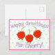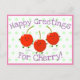 Cute jumping red cherries cartoon illustration postcard
